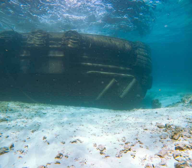 During a recent site visit, BNT staff observed the deteriorating condition of the vessels and the surrounding area. This includes damage to corals, scattered debris from the vessels, and loss of sand that was being transported on the barge. During the site visit, BNT staff documented rope from the vessels entangled around critically endangered Elkhorn Corals. Additionally, the tugboat was observed to be more than 75% submerged and is susceptible to rolling, threatening extensive damage to the marine environment should it be moved by a storm or severe weather. This risk can occur at any point in time, considering that The Bahamas is currently in an active hurricane season.